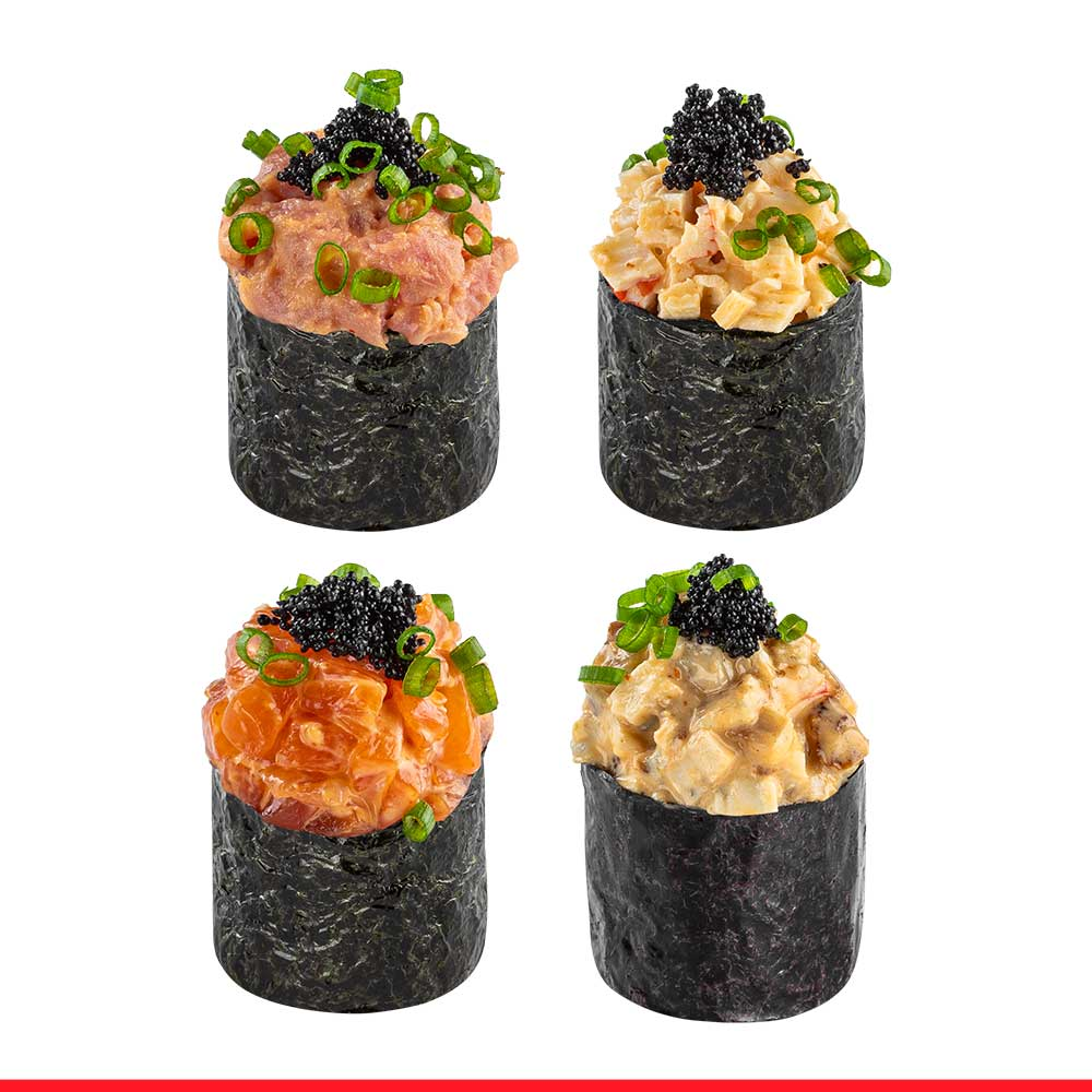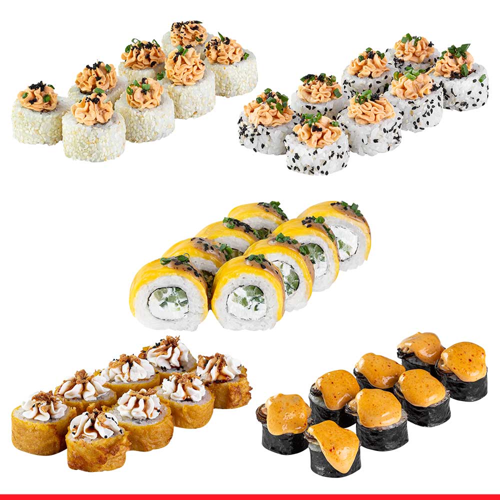 Вес блюда может отличаться +/- 20 г. Входит: имбирь, васаби и соевый соус.
